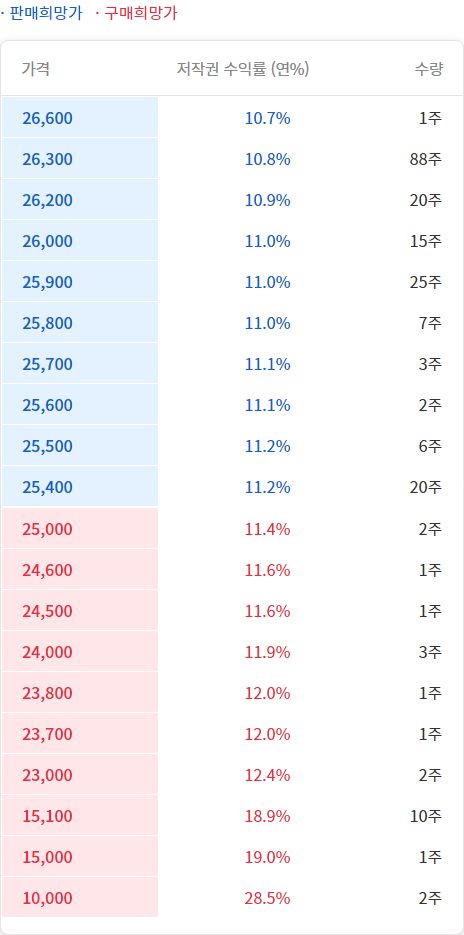 그 밑에는 판매희망가와 구매희망가가 나옵니다.