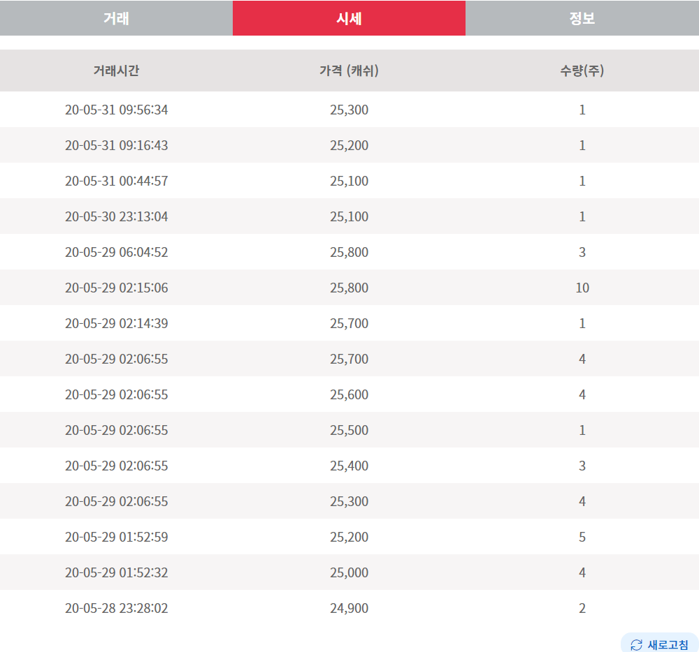 시세를 클릭하시면 최근 거래가 어떻게 되었는지 확인하실 수 있습니다.