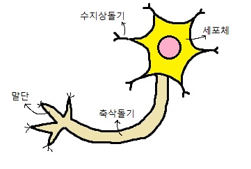 - 축삭돌기(axon) : 다른 뉴런으로 전달