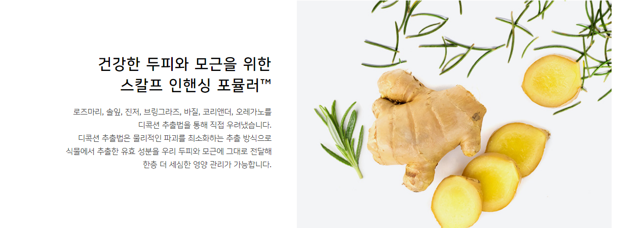 이 로즈마리 오일의 a-피넨과 버베논 성분이 두피 순환을 도와줘서 두피 재생력을 되찾게 도와줍니다.
